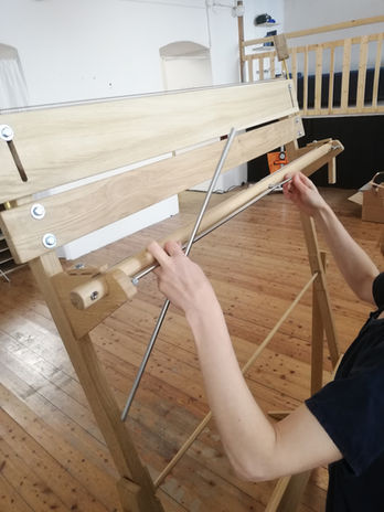 I accepted the challenge to build a full working, disassembable, and adjustable tapestry loom system (for weaving carpets and similar things like that) and it was a very fun think to work on for me. Many neat details. All parts of the system are in massive oak-wood and clear-laquered.